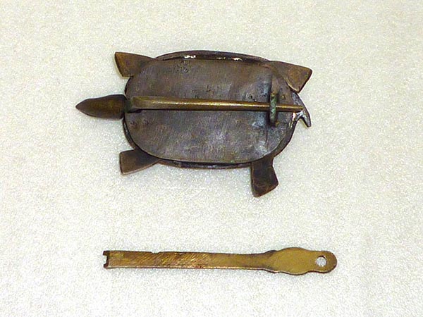 こちらは珍しい蝙蝠型の錠前になります。鍵もついておりスムーズな施錠となっております。